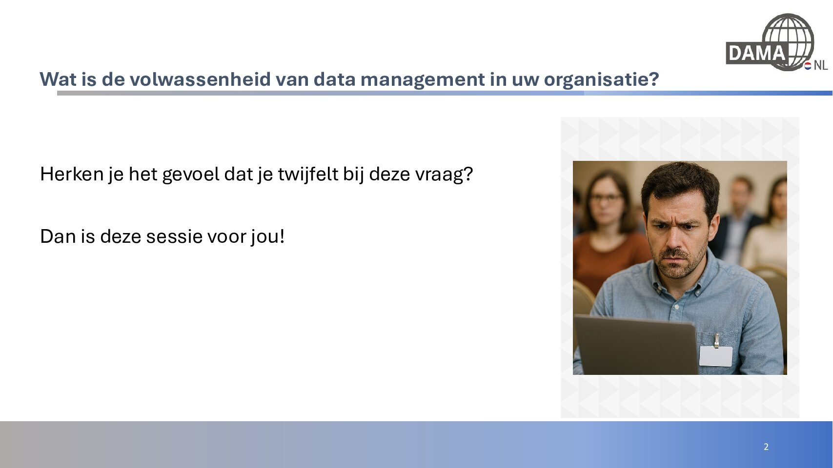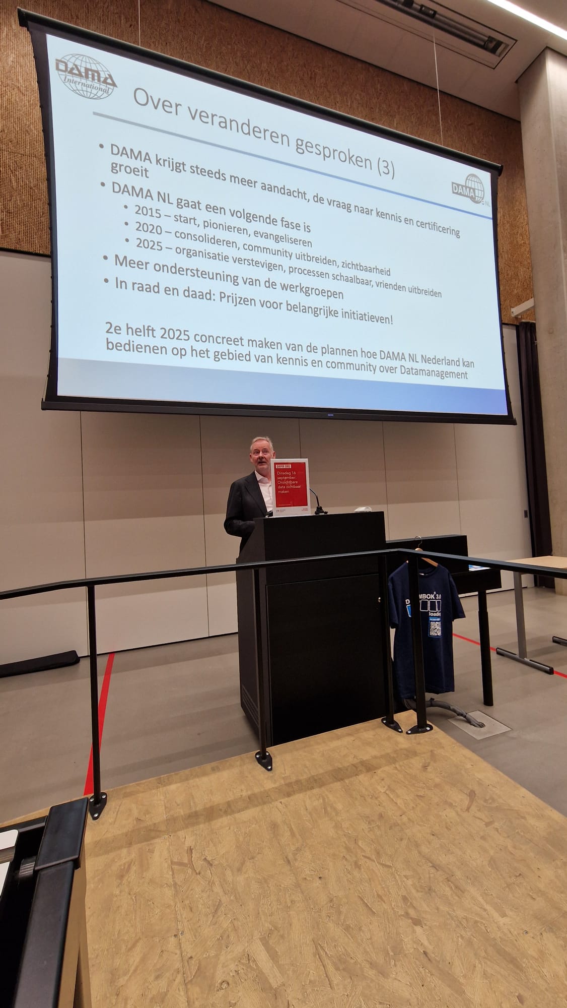 De dag begon met de opening door Ronald Baan, voorzitter van DAMA NL, met waar DAMA voor staat, wat ze doen en wat wij hier in Nederland doen voor ons netwerk. Daarbij ook de notie dat er dingen veranderen en versnellen en dat DAMA NL een nieuwe fase ingaat, juist door de toenemende vraag aan goed datamanagement. Ook DAMA International, die de DAMA DMBOK uitgeeft en de DAMA CDMP certificering is druk om de kennis te vernieuwen en de organisatie uit te breiden.